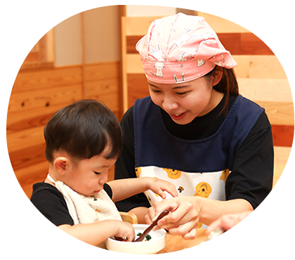 | 離乳食 | 離乳食はご家庭と連携して、お子さま一人ひとりの状況に応じて個別に対応しています |